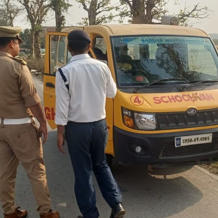 परतावल में 2 स्कूली बसों का काटा ₹10 हजार चालान:सीसीटीवी, फिटनेस और सुरक्षा उपकरणों की जांच की; ट्रैफिक नियम पालन करने की दी हिदायक