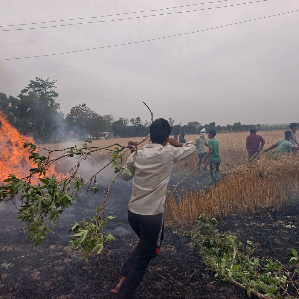 रजौड़ा कला में 15 एकड़ गेहूं की फसल जलकर राख:बाल्टियों में पानी भरकर बुझाने पहुंचे लोग, किसानों को भारी नुकसान