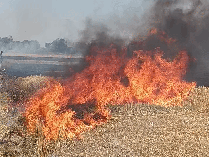 बस्ती में आग से 1600 बीघा गेहूं का डंठल राख:सोनहा क्षेत्र के तीन गांवों में पशु चारे का संकट