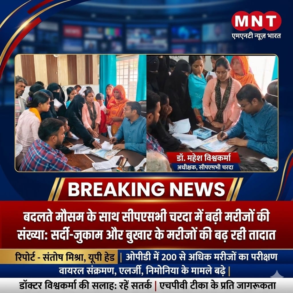 बहराइच। इन दिनों मौसम में हो रहे अचानक बदलाव का सीधा असर लोगों के स्वास्थ्य पर पड़ रहा है। दिन में तेज धूप और शाम ढलते ही तापमान में आ रही गिरावट के कारण बीमारियां तेजी से पैर पसार रही हैं। शनिवार को बहराइच के सीएचसी (सामुदायिक स्वास्थ्य केंद्र) चरदा में मरीजों की भारी भीड़ उमड़ पड़ी, जहां सर्दी, जुकाम और बुखार के मरीजों की संख्या में अचानक भारी उछाल देखा गया।