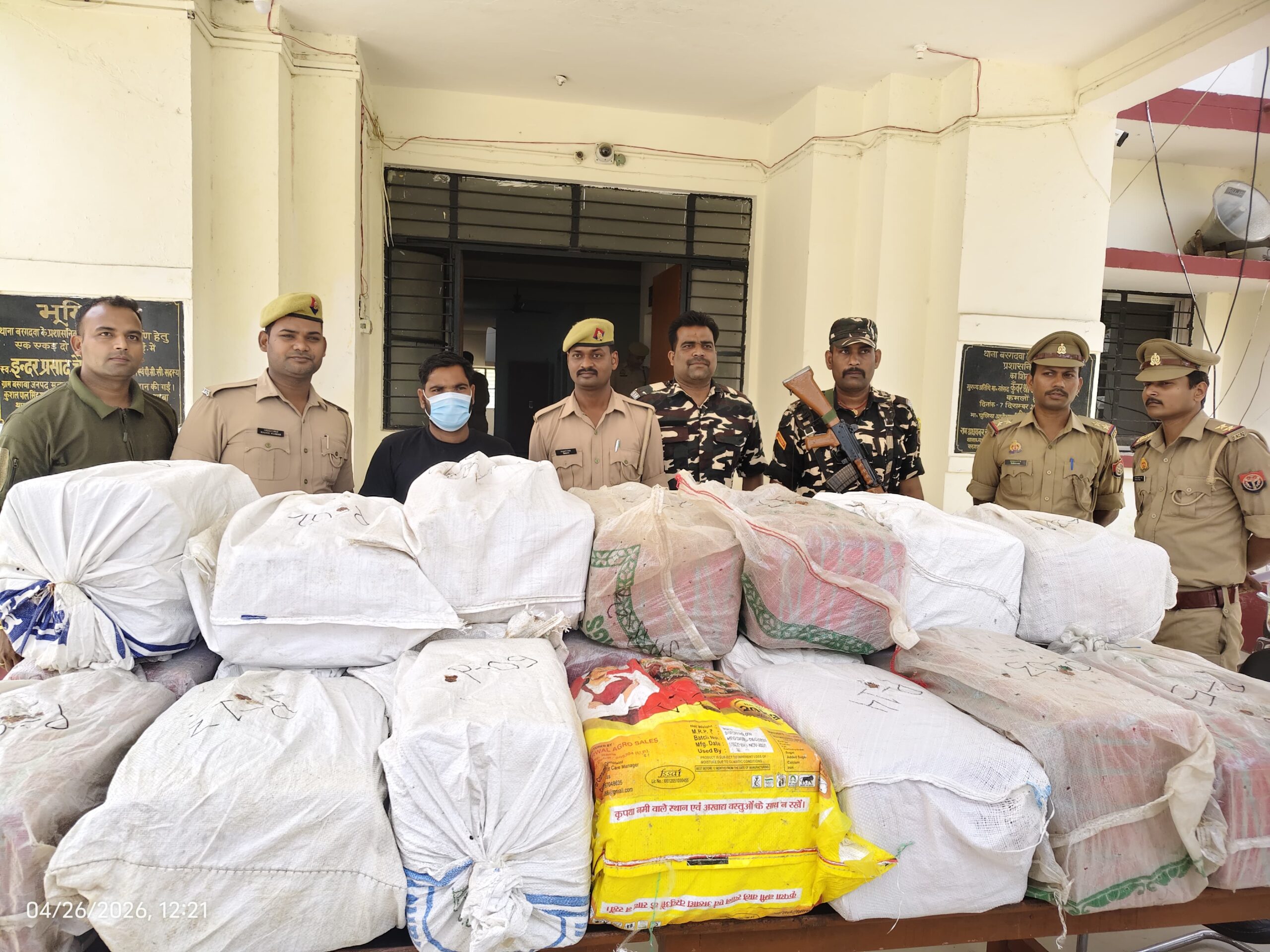 बरगदवा/महराजगंज:थाना क्षेत्र में भारत-नेपाल सीमा से सटे इलाके में पुलिस, सशस्त्र सीमा बल (SSB) और आबकारी विभाग की संयुक्त टीम ने अंतरराष्ट्रीय गांजा तस्करी के खिलाफ कार्रवाई की है। टीम ने एक ट्रक से 327.17 किलोग्राम अवैध गांजा बरामद किया और एक तस्कर को गिरफ्तार किया। संयुक्त टीम को गुप्त सूचना मिली थी कि नेपाल के काठमांडू से एक ट्रक के जरिए भारी मात्रा में गांजा भारत लाया जा रहा है। इस सूचना के आधार पर बरगदवा थाना क्षेत्र के(नौतनवा ठूठीबारी रोड) चकरार एस एस बी मार्ग पर बॉर्डर रोड के पास सघन चेकिंग अभियान चलाया गया। रविवार देर रात टीम ने संदिग्ध ट्रक (HR38W 1261) को घेराबंदी कर रोका। तलाशी लेने पर ट्रक के केबिन में छिपाकर रखे गए 21 पैकेटों में गांजा बरामद हुआ। मौके पर इलेक्ट्रॉनिक तराजू से इसका वजन 327.17 किलोग्राम पाया गया।