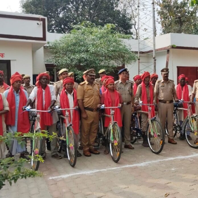 नवाबगंज थाने में 49 चौकीदार सम्मानित:साइकिल, टॉर्च और साफा देकर किया गया सम्मान