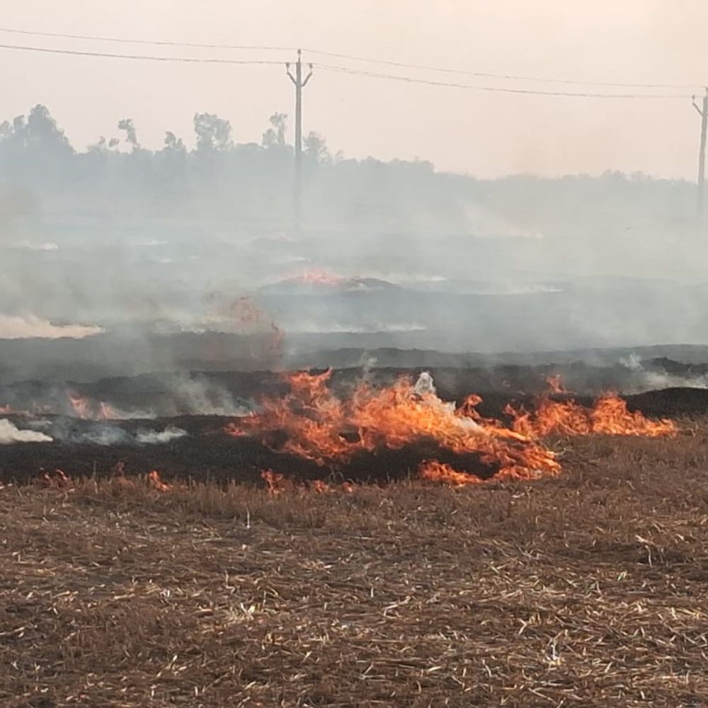 श्रावस्ती में गेहूं के खेत में लगी आग:लाइनमैन की सूझबूझ से टला बड़ा नुकसान, गांव तक पहुंची लपटें