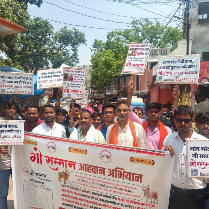 गौ माता को राष्ट्रमाता घोषित करने की मांग:गौ सम्मान आवाहन अभियान में निकली विशाल पदयात्रा