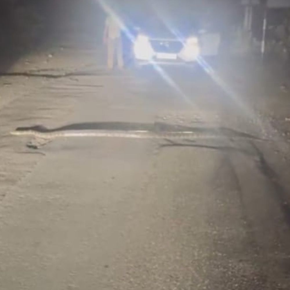 बहराइच में सड़क पर दिखा विशाल अजगर:कतर्नियाघाट क्षेत्र में 10 मिनट तक बाधित रहा यातायात