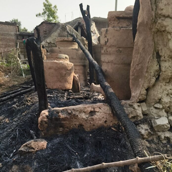 लोहारन पुरवा में रात 2 बजे लगी भीषण आग:घर जलकर खाक; अनाज भी स्वाहा, परिवार बेघर