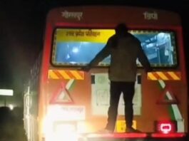 बस्ती में रोडवेज बस के पीछे लटका युवक, VIDEO:तेज रफ्तार बस...