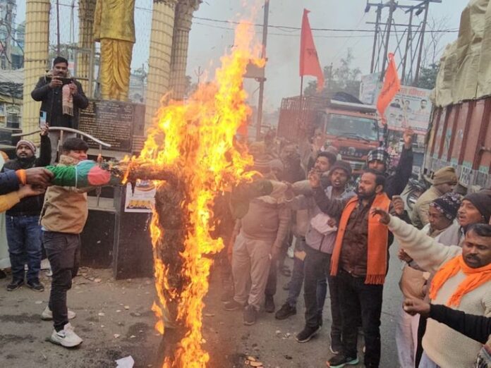 उतरौला में शनिवार दोपहर विश्व हिन्दू परिषद (विहिप) और बजरंग दल ने बांग्लादेश में हिंदुओं पर हो रहे कथित अत्याचारों के विरोध में प्रदर्शन किया। इस दौरान कार्यकर्ताओं ने नारेबाजी करते हुए कट्टरपंथियों का पुतला फूंका। यह प्रदर्शन जिला प्रमुख प्रसार प्रमुख दीपक चौधरी के नेतृत्व में आयोजित किया गया। कार्यकर्ता दुःख हरण नाथ मंदिर राजगद्दी से श्यामा प्रसाद चौराहे तक बाइक रैली निकालते हुए नगर में पहुंचे। उन्होंने बांग्लादेश सरकार के खिलाफ नारे लगाए, जिसके बाद कट्टरपंथियों के पुतले को आग के हवाले कर दिया गया। दीपक चौधरी ने इस दौरान कहा कि बांग्लादेश में लगातार हिंदुओं की हत्याएं की जा रही हैं। उन्होंने आरोप लगाया कि सार्वजनिक स्थलों पर एक-एक कर हिंदुओं को निशाना बनाया जा रहा है, जिससे भारत के हिंदुओं में आक्रोश है। नगर अध्यक्ष आयुष जयसवाल ने भारत सरकार से इस मामले में तत्काल हस्तक्षेप करने और ऐसी घटनाओं पर रोक लगाने की मांग की। उन्होंने यह भी कहा कि बांग्लादेश में पीड़ित हिंदुओं को भारत में शरण देने की प्रक्रिया को आसान बनाया जाना चाहिए, ताकि उन्हें कट्टरपंथियों से बचाया जा सके। इस प्रदर्शन में संतोष पटवा, अनिल कुमार, शनि कुमार, संदीप गुप्ता, अमित कुमार, सुरेश कश्यप, मोनू कौशल, रविन्द्र कश्यप, महेश गुप्ता, राजेश रिंकू, शुभम मोदनवाल, मारुति गुप्ता, शैलेश गुप्ता, अनिल कुमार, राजू गुप्ता, सरनजीत सैनी, सुरेश कुमार, अनिल कुमार, अभिमन्यु फ़ौजी और रामनरेश कौशल सहित कई कार्यकर्ता मौजूद रहे।
