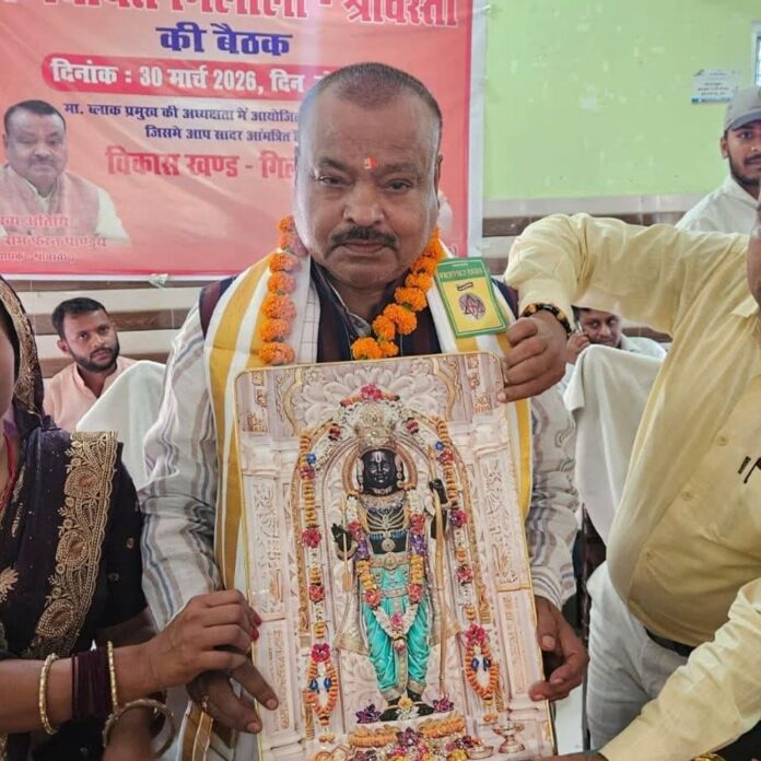श्रावस्ती जनपद के गिलौला विकास खंड सभागार में सोमवार, 30 मार्च 2026 को क्षेत्र पंचायत की बैठक आयोजित की गई। बैठक की अध्यक्षता ब्लॉक प्रमुख पूजा देवी ने की। श्रावस्ती विधायक रामफेरन पांडेय इस बैठक के मुख्य अतिथि थे। ब्लॉक प्रमुख पूजा देवी ने पुष्पगुच्छ भेंट कर उनका स्वागत किया। ब्लॉक प्रमुख प्रतिनिधि प्रकाश चंद्र ने विधायक को अंगवस्त्र भेंट किया, जबकि ग्राम प्रधानों और क्षेत्र पंचायत (बीडीसी) सदस्यों ने फूलमालाओं से उनका स्वागत किया। बैठक में शासन द्वारा संचालित विभिन्न जनकल्याणकारी योजनाओं पर विस्तृत चर्चा हुई। इनमें मनरेगा, राष्ट्रीय ग्रामीण आजीविका मिशन, पंचम एवं पंद्रहवां वित्त आयोग, विभिन्न पेंशन योजनाएं, कृषि रक्षा, राष्ट्रीय खाद्य सुरक्षा मिशन, प्रधानमंत्री एवं मुख्यमंत्री आवास योजना (ग्रामीण), पशुपालन, स्वच्छ भारत मिशन, शिक्षा विभाग के कार्यक्रम, जल जीवन मिशन, एकीकृत बाल विकास परियोजना, निःशुल्क बोरिंग तथा सहकारिता विभाग की योजनाएं प्रमुख थीं। विभागीय अधिकारियों ने इन योजनाओं की प्रगति और उनके क्रियान्वयन की जानकारी दी। उन्होंने लाभार्थियों तक योजनाओं का लाभ सुनिश्चित करने पर जोर दिया। बैठक में क्षेत्र के समग्र विकास, आधारभूत सुविधाओं के सुदृढ़ीकरण और जनहित से जुड़े विभिन्न मुद्दों पर भी गंभीर चर्चा की गई। सभी योजनाओं को प्रभावी ढंग से लागू करने के निर्देश दिए गए। इस अवसर पर गिलौला के विकास खंड अधिकारी, ग्राम प्रधान, क्षेत्र पंचायत सदस्य, जिला पंचायत सदस्य, विभिन्न विभागों के अधिकारी-कर्मचारी और भाजपा कार्यकर्ता उपस्थित थे।