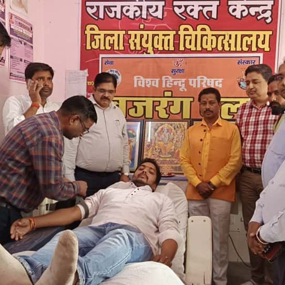 महराजगंज के जिला संयुक्त चिकित्सालय में विश्व हिंदू परिषद और बजरंग दल ने एक रक्तदान शिविर का आयोजन किया। इस कार्यक्रम का शुभारंभ संयुक्त चिकित्सालय के मुख्य चिकित्सा अधिकारी (CMS) द्वारा किया गया। CMS महोदय ने सर्वप्रथम प्रभु श्री राम और प्रभु हनुमान जी की तस्वीर के सामने दीप प्रज्ज्वलित कर शिविर का उद्घाटन किया। इसके बाद रक्तदान प्रक्रिया शुरू हुई। शिविर में बजरंग दल के जिला संयोजक संदीप जायसवाल ने सबसे पहले रक्तदान किया। उनके बाद जिलाध्यक्ष अरविंद सिंह, सह संयोजक राहुल, प्रखंड सह संयोजक अजय, खंड करवा दीपक, संघ के हेमंत, प्रदीप और घनश्याम सहित कई बजरंग दल कार्यकर्ताओं ने भी रक्तदान किया। शैलेश, सुदर्शन, विनय, अशोक, गोलू, जिला सह मंत्री बलराम और राकेश समेत कई अन्य लोगों ने भी रक्तदान के लिए पंजीकरण कराया। इस अवसर पर प्रांत मिलन प्रमुख अविनाश और संघ परिवार के जिला प्रचारक विनय सहित कई मुख्य अधिकारी उपस्थित रहे। जिलाध्यक्ष अरविंद सिंह ने रक्तदान के महत्व पर प्रकाश डालते हुए कहा कि यह किसी भी व्यक्ति का जीवन बचाने में सहायक हो सकता है।