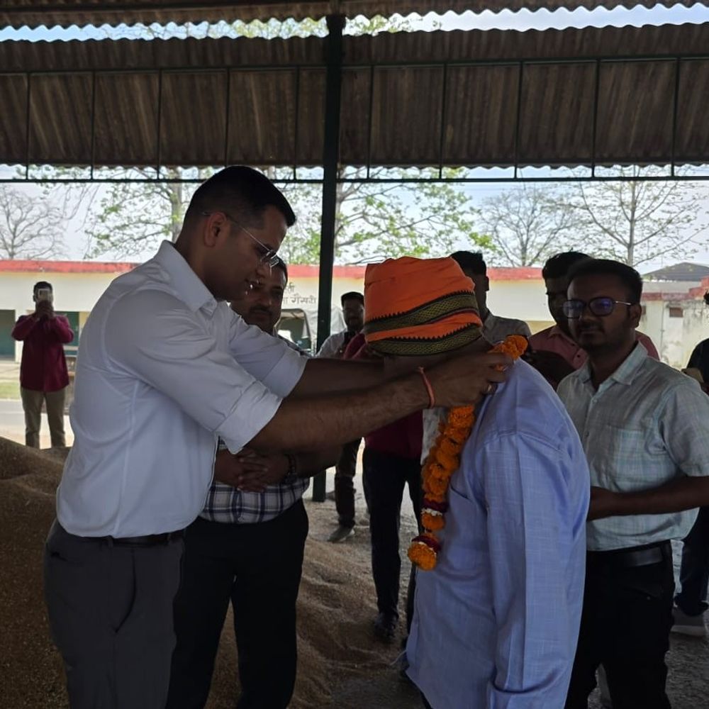 बलरामपुर डीएम ने माला पहनाकर गेहूं खरीद शुरू कराई:केंद्रों का निरीक्षण कर पारदर्शिता के दिए निर्देश