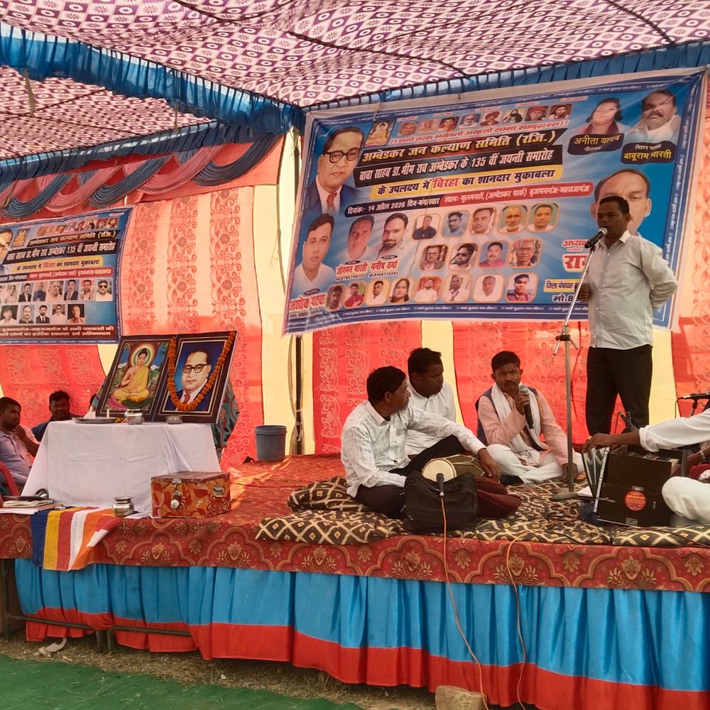 बृजमनगंज ब्लॉक क्षेत्र की फूलमनहा ग्राम पंचायत स्थित अंबेडकर पार्क में मंगलवार को भारत रत्न डॉ. भीमराव अंबेडकर की जयंती पर बिरहा कार्यक्रम आयोजित किया गया। यह कार्यक्रम जन कल्याण समिति के तत्वावधान में हुआ। कार्यक्रम का आयोजन अशोक पटवा ने किया, जबकि जोगमन भारती ने इसकी अध्यक्षता की। डॉ. निशांत कुमार त्रिपाठी मुख्य अतिथि के रूप में उपस्थित रहे। इस अवसर पर बृजमनगंज ब्लॉक क्षेत्र के लेदवा, मुर्दहिया और मनसबगढ़ सहित विभिन्न स्थानों से टीमें जुलूस लेकर अंबेडकर पार्क पहुंचीं। यहां अंबेडकर जी की प्रतिमा की पूजा-अर्चना कर माल्यार्पण किया गया। इसके बाद बिरहा कलाकारों ने डॉ. अंबेडकर के जीवन दर्शन पर प्रकाश डाला। कार्यक्रम को सफल बनाने में रानू बौद्ध, जय सिंह, दिलीप बौद्ध, अनिल, मनीष और गोरखनाथ सहित कई लोगों ने महत्वपूर्ण भूमिका निभाई।