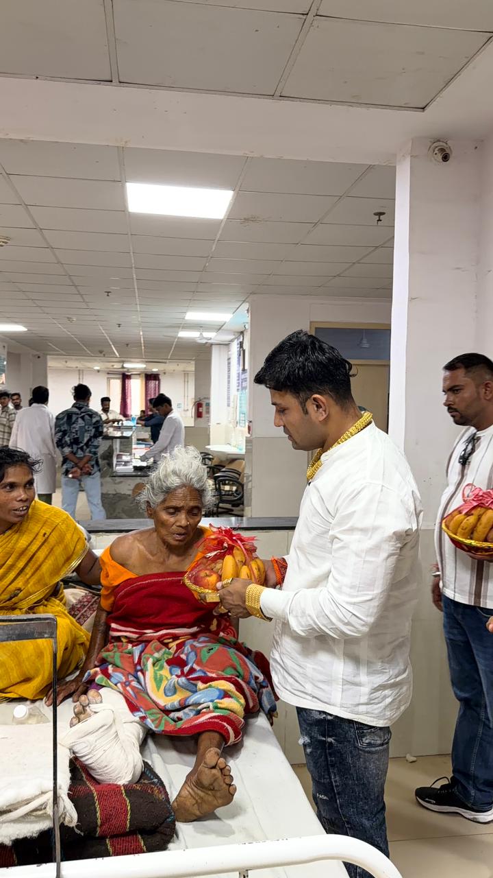 यमन साहू ने मानवता और सेवा भाव का परिचय देते हुए घायल मरीजों को फल की टोकरी भेंट की। इतना ही नहीं, उन्होंने अस्पताल में भर्ती अन्य मरीजों का भी हाल-चाल पूछा और उन्हें भी फल वितरित किए।