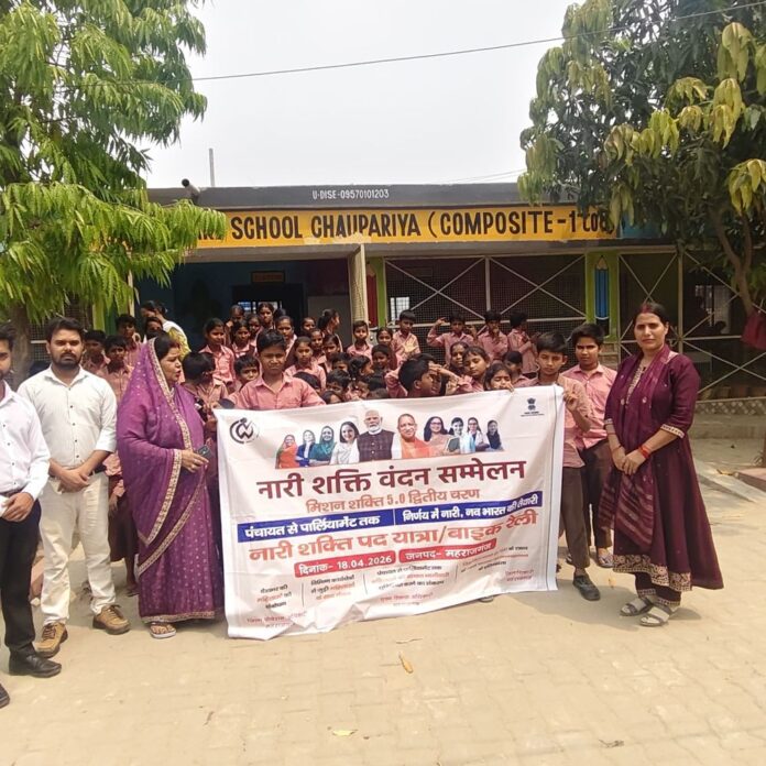 महराजगंज में 18 अप्रैल 2026 को जिला प्रोबेशन अधिकारी के निर्देशानुसार एक जागरूकता कार्यक्रम आयोजित किया गया। यह कार्यक्रम “हब फॉर एंपावरमेंट ऑफ वूमेन” की ओर से उच्च प्राथमिक विद्यालय चौपरिया में संपन्न हुआ, जिसका नेतृत्व डीएमसी रत्ना तिवारी ने किया। कार्यक्रम के दौरान छात्र-छात्राओं और ग्रामीणों को नारी शक्ति वंदन अधिनियम के बारे में विस्तार से जानकारी दी गई। इसका मुख्य उद्देश्य महिलाओं को उनके अधिकारों और सशक्तिकरण के महत्व से अवगत कराना था। विशेष रूप से आगामी अक्षय तृतीया के अवसर पर संभावित बाल विवाह की घटनाओं को रोकने के लिए एक व्यापक जागरूकता अभियान चलाया गया। उपस्थित लोगों को बाल विवाह को एक दंडनीय अपराध बताते हुए इसके कानूनी प्रावधानों से अवगत कराया गया।