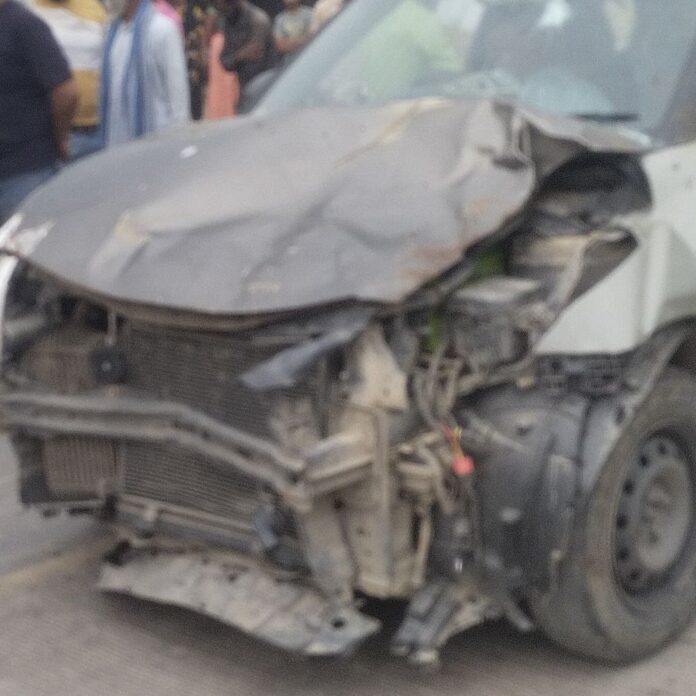 बहराइच में मवेशी से टकराई कार:अगला हिस्सा क्षतिग्रस्त, सवारों को मामूली चोटें आईं