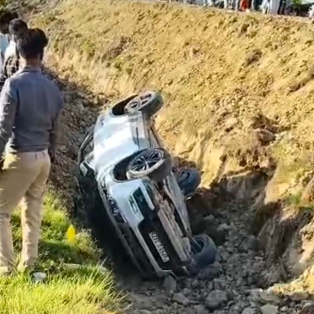 सिद्धार्थनगर के तेलौरा में कार खाई में गिरी:चूटी पुल के पास हुआ हादसा, भाजपा नेता राजेंद्र पांडे सुरक्षित