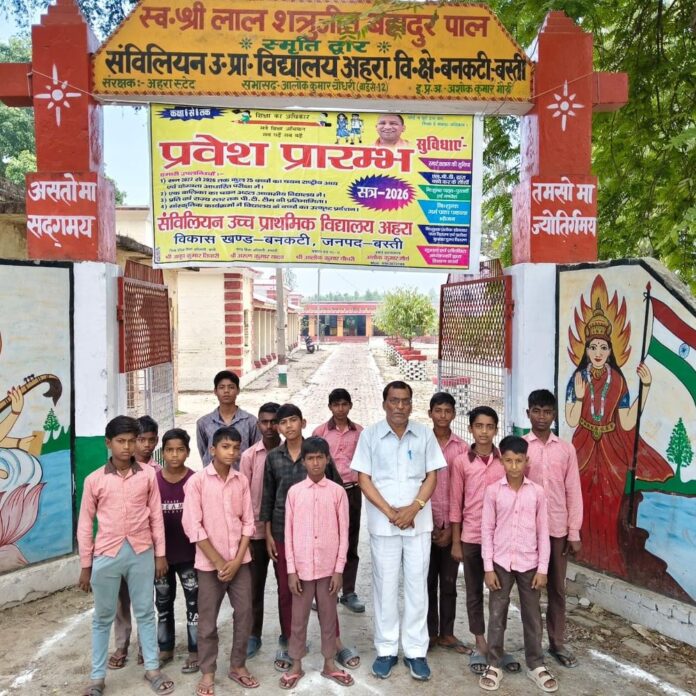संविलियन उच्च प्राथमिक विद्यालय अहरा और बोदवल बाजार में प्रवेश सत्र 2026 के प्रथम दिवस पर नए विद्यार्थियों का गर्मजोशी से स्वागत किया गया। ‘नवारंभ’ कार्यक्रम के तहत बच्चों को रोली, चंदन और माला पहनाकर सम्मानित किया गया, साथ ही उन्हें मिठाइयां खिलाई गईं और पुस्तकों का वितरण भी किया गया। यह कार्यक्रम विकास खंड बनकटी के इन विद्यालयों में ‘स्कूल चलो अभियान’ के साथ आयोजित किया गया। कक्षा एक से आठ तक के नवप्रवेशी बच्चों का रोली-चंदन से टीका लगाकर और माला पहनाकर स्वागत किया गया। शिक्षकों ने बच्चों को बैंच भी लगाए। इस अवसर पर संविलियन उच्च प्राथमिक विद्यालय अहरा के इंचार्ज प्रधानाध्यापक अशोक कुमार मौर्य और बोदवल बाजार के प्रधानाध्यापक ओमप्रकाश विश्वकर्मा ने बच्चों को मिठाई खिलाकर उनका मुंह मीठा कराया। उन्होंने सभी विद्यार्थियों को मन लगाकर पढ़ाई करने के लिए प्रेरित किया। अहरा विद्यालय में सहायक अध्यापिका विजय लक्ष्मी, मृदुला, कंचन, शकुंतला तथा अनुदेशक आशुतोष पांडेय, केशवराम, मंजू और मंजूलता ने बच्चों का उत्साहपूर्वक स्वागत किया। इसी प्रकार, संविलियन उच्च प्राथमिक बोदवल बाजार में प्रधानाध्यापक ओमप्रकाश विश्वकर्मा के साथ सहायक अध्यापिका शशिप्रभा पांडेय, सुमन गुप्ता, उजमा खातून, प्रवीन और अर्जुन सिंह, शिक्षामित्र राजेश कुमार, निर्मला, शांति देवी तथा अनुदेशक प्रिया त्रिपाठी ने नए बच्चों का स्वागत किया।