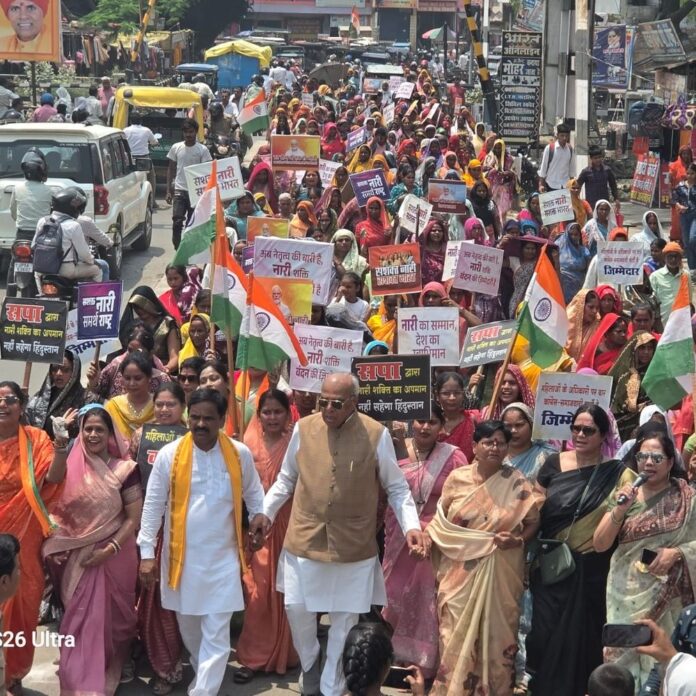 रैली के दौरान प्रशासन पूरी तरह सतर्क नजर आया। सुरक्षा के पुख्ता इंतजाम किए गए थे और पूरे मार्ग पर पुलिस बल तैनात रहा। यातायात व्यवस्था को सुचारु बनाए रखने के लिए वैकल्पिक मार्गों का सहारा लिया गया, जिससे आमजन को कम से कम परेशानी हो। इस अवसर पर भाजपा जिलाध्यक्ष दीपक मौर्य, नौगढ़ नगर पालिका अध्यक्ष गोविंद माधव, सांसद प्रतिनिधि एसपी अग्रवाल, राजेंद्र पांडे, सच्चिदानंद पांडे, जयवर्धन तिवारी, सभासद दिलीप सिंह, उसका नगर पंचायत अध्यक्ष मंजू जायसवाल, शोहरतगढ़ नगर पंचायत अध्यक्ष उमा अग्रवाल, महिला मोर्चा जिला अध्यक्ष अनुराग मिश्रा सहित बड़ी संख्या में पदाधिकारी और महिलाएं मौजूद रहीं। रैली के अंत में महिलाओं ने एक स्वर में सरकार से 33 प्रतिशत आरक्षण को शीघ्र लागू करने की मांग की। यह आयोजन न केवल सिद्धार्थनगर बल्कि पूरे प्रदेश के लिए एक मजबूत संदेश बनकर उभरा कि महिलाएं अब अपने अधिकारों को लेकर पूरी तरह जागरूक हैं और उन्हें पाने के लिए संगठित होकर आवाज बुलंद कर रही हैं।