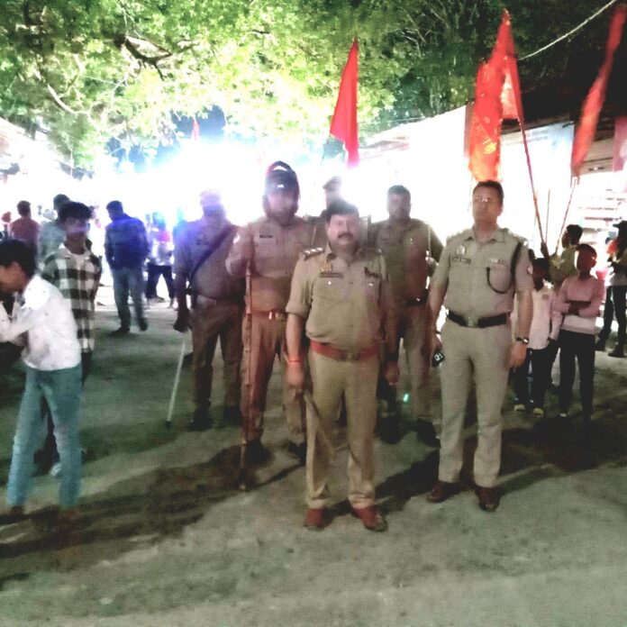 बहराइच के बलहा विकास खंड की ग्राम पंचायत मझौवा भुलौरा में चैत्र नवरात्रि अष्टमी पर मां दुर्गा की आरती और प्रसाद वितरण का आयोजन किया गया। इस अवसर पर वार्षिक शोभायात्रा निकाली गई, जिसमें बड़ी संख्या में श्रद्धालुओं ने भाग लिया। शोभायात्रा के दौरान श्रद्धालु डीजे की धुन पर झूमते और नृत्य करते हुए पूरे उत्साह के साथ शामिल हुए। कार्यक्रम के मुख्य आयोजक चंदन टेकरीवाल ने बताया कि शोभायात्रा नानपारा से होते हुए जुबली गंज स्थित श्रीदेवी काली कुंडा मंदिर जाएगी। यह आयोजन जंगली प्रसाद, राकेश विश्वकर्मा, अमरनाथ, पुनीत टेकरीवाल, रजनीश टेकरीवाल, राजू विश्वकर्मा और समस्त ग्रामवासियों के सहयोग से संपन्न हुआ। आयोजन के दौरान शांति और सुरक्षा व्यवस्था बनाए रखने के लिए पुलिस प्रशासन भी मौके पर मौजूद रहा। इस पूरे आयोजन में श्रद्धालुओं की भारी भीड़ उमड़ी और भक्ति का माहौल रहा।