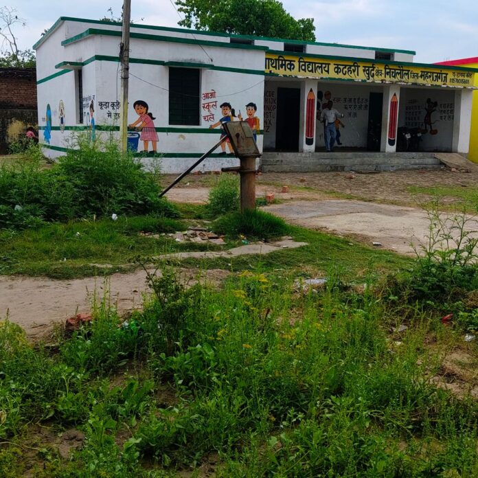 कटहरी खुर्द प्राथमिक विद्यालय में गंदगी, बाउंड्री वॉल टूटी:26 जनवरी से नहीं हुई सफाई, हैंडपंप भी खराब पड़ा