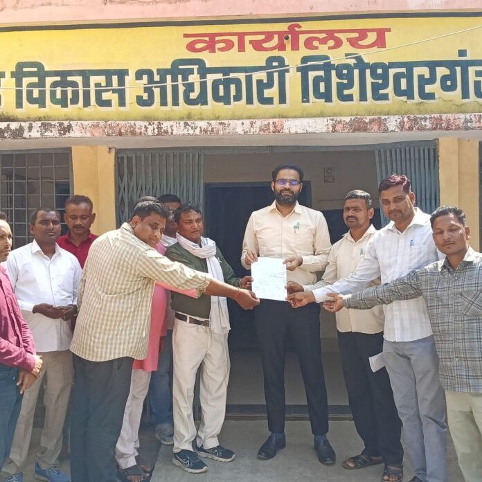रोजगार सेवकों ने बकाया मानदेय मांगा, हड़ताल की चेतावनी:विशेश्वरगंज में बीडीओ को ज्ञापन, 16 से 25 अप्रैल तक कलमबंद हड़ताल की घोषणा