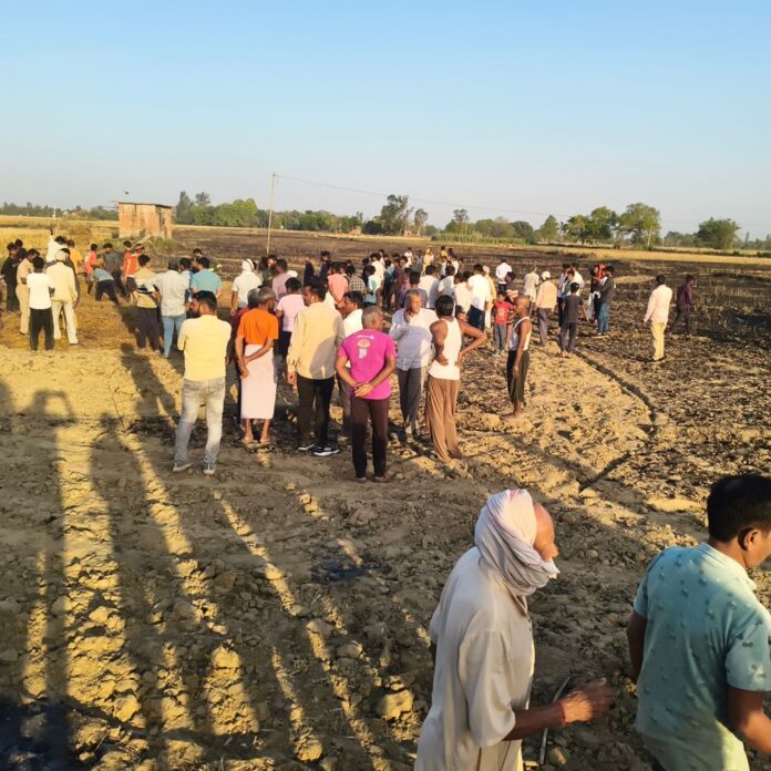 कप्तानगंज में कंबाइन मशीन से लगी आग:80 बीघा गेहूं की फसल राख, 21 किसान प्रभावित