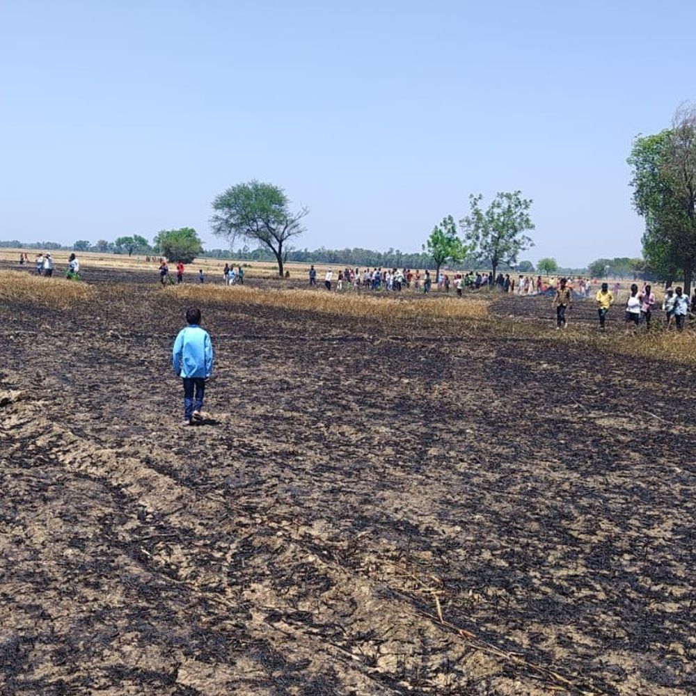 श्रावस्ती के गिलौला में गेहूं की फसल में आग:एक हेक्टेयर फसल जलकर राख, किसानों को आर्थिक क्षति