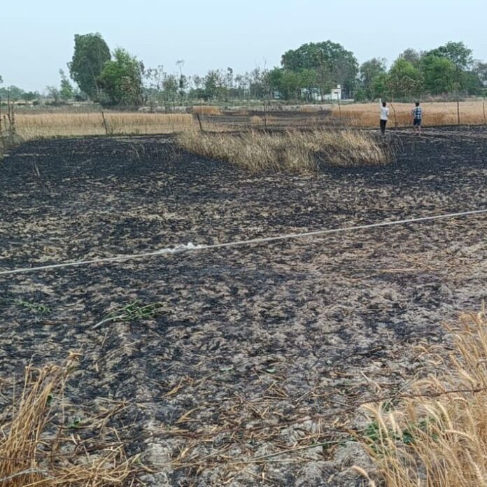 बीड़ी की चिंगारी से लगी आग, गेंहूं की फसल राख:विक्रमजोत में मजदूरों की लापरवाही से आठ बीघा गेंहूं जला
