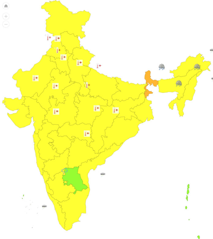 देशभर में खासकर उत्तर भारत और मध्य भारत में गर्मी का प्रकोप देखने को मिल रहा है। बीते दो हफ्तों से लगातार तापमान में बढ़ोतरी दर्ज की जा रही है। मौसम विभाग ने कई राज्यों में तो लू का अलर्ट जारी कर दिया है और लोगों को गर्मी से बचने के लिए उपाय करने की सलाह दी है। इसके साथ ही पूर्वोत्तर भारत में अभी भी मौसम की गतिविधियां जारी हैं। मौसम विभाग ने आज कुल 12 राज्यों में बारिश होने की संभावना जताई है और इनमें ज्यादातर राज्य पूर्वोत्तर भारत के ही हैं। पूर्वोत्तर के कई राज्यों में आज भारी बारिश का अलर्ट जारी किया गया है। इसके साथ ही ज्यादातर राज्यों में गर्मी बढ़ने की संभावना जताई गई है।