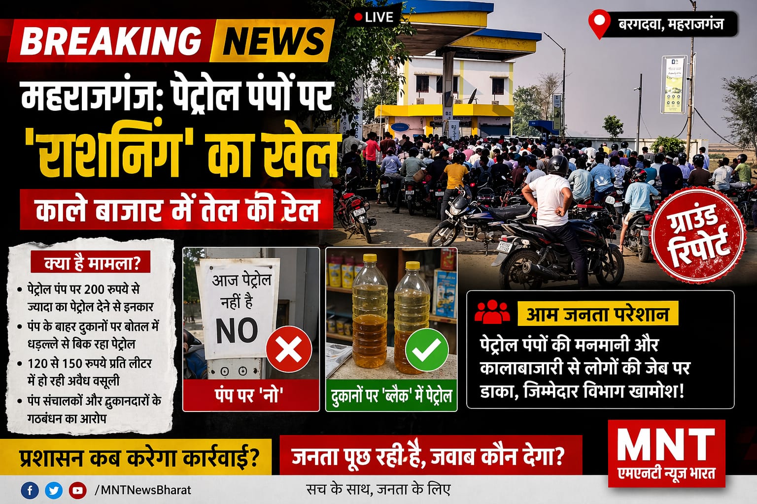 महराजगंज (बरगदवा): जनपद के सीमावर्ती इलाकों में इन दिनों पेट्रोल पंपों की कार्यप्रणाली और अवैध तेल कारोबारियों के बीच का “गठबंधन” आम जनता के लिए मुसीबत बन गया है। ताजा मामला बरगदवा थाना अंतर्गत पढ़ियाताल स्थित सिंह मेसेर्स पेट्रोल पंप का है, जहाँ मंगलवार सुबह से ही अराजक स्थिति देखने को मिली।