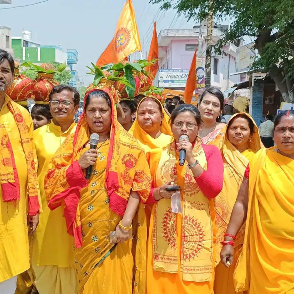 निचलौल के सिसवा में गायत्री महायज्ञ शुरू:शक्तिपीठ के वार्षिकोत्सव पर निकली कलश शोभायात्रा, सैकड़ों भक्त हुए शामिल