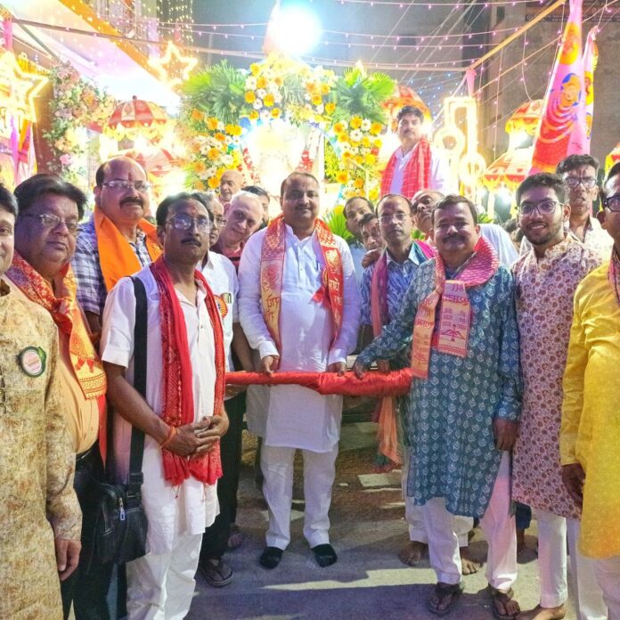 सिसवा में श्रीश्याम मंडल, मारवाड़ी युवा मंच और श्रीश्याम महिला मंडल के संयुक्त तत्वावधान में दो दिवसीय स्वर्ण जयंती श्रीश्याम महोत्सव रविवार शाम को शुरू हो गया। महोत्सव का आगाज़ निशान शोभा यात्रा और अखंड ज्योति स्थापना के साथ किया गया, जिससे पूरा कस्बा श्याम भक्ति में लीन हो गया। शोभायात्रा का शुभारंभ नगरपालिका अध्यक्ष प्रतिनिधि गिरजेश जायसवाल ने फीता काटकर किया। इसके बाद मंदिर के पुजारी ने श्याम प्रभु का आकर्षक श्रृंगार कर उन्हें रथ पर विराजमान किया। पूजा-अर्चना और आरती के उपरांत श्याम भक्तों ने आस्था और भक्ति के साथ रथ को खींचना शुरू किया। इस दौरान पूरे नगर में श्याम प्रभु के जयकारों की गूंज सुनाई दी। शोभा यात्रा में महिला मंडल की सदस्य निशान ध्वज लेकर आगे चल रही थीं, जबकि उनके पीछे श्रद्धालु लड्डू-गोपाल की पालकी लेकर चल रहे थे। साथ ही महिला व पुरुष श्रद्धालु बाबा के भजनों पर थिरकते हुए चल रहे थे। यह यात्रा श्रीश्याम मंदिर से शुरू होकर फलमंडी, स्टेट चौक, रामजानकी मंदिर, अमरपुरवा, गोपाल नगर और रेलवे स्टेशन रोड होते हुए वापस श्याम मंदिर पहुंची। मंदिर पहुंचने पर श्रीश्याम प्रभु का अलौकिक श्रृंगार किया गया। इसके बाद अखंड ज्योति की स्थापना हुई और भजन-कीर्तन का शुभारंभ किया गया। भजन गायक पूरी रात श्याम भजनों के माध्यम से भक्तिमय माहौल बनाए रखेंगे। इस शोभा यात्रा में संत कुमार जालान, दिनेश भालोटिया, गिरधारी केडिया, संदीप सिंहानिया, धीरज सिंहानिया, राधेश्याम सिंहानिया, हरी भालोटिया, बाबूलाल अग्रवाल, रमेश सरावगी, जयप्रकाश भालोटिया, प्रहलाद अग्रवाल, रजनीश केडिया, बबलू शर्मा, अशोक टिबड़ेवाल, मनोज सुल्तानिया, अशोक शर्मा, बजरंगी अग्रवाल, रामू मित्तल, शिव केडिया, अरुण बागला, उमा जालान, प्रेमलता सिंहानिया, राधा सरावगी, मीना बंका, क्षमता शर्मा, सुधा अग्रवाल, शारदा अग्रवाल, संगीता अग्रवाल, प्रिया सिंहानिया, ज्योति सिंहानिया और आशा रूंगटा सहित नगर के कई महिला व पुरुष श्रद्धालु शामिल हुए।