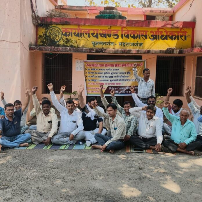 आठ माह से मानदेय नहीं मिला:ग्राम रोजगार सेवकों ने विकासखंड कार्यालय पर किया प्रदर्शन