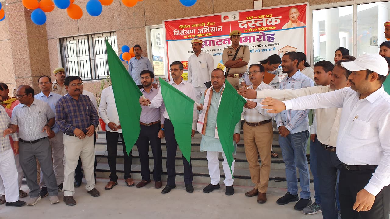 श्रावस्ती, 01 अप्रैल, 2026। सू0वि0। प्रदेश के मा0 मुख्यमंत्री योगी आदित्यनाथ जी के निर्देशानुसार जनपद में संचारी रोग नियंत्रण हेतु विशेष अभियान का शुभारम्भ किया गया। इस दौरान मा0 विधायक रामफेरन पाण्डेय, जिलाधिकारी अश्विनी कुमार पाण्डेय, मुख्य विकास अधिकारी शाहिद अहमद एवं मुख्य चिकित्साधिकारी डा0 ए0के0 सिंह ने कलेक्टेªट परिसर में संचारी रोग नियंत्रण जागरूकता रैली को हरी झण्डी दिखाकर रवाना किया तथा उपस्थित लोगों को संचारी रोग से बचाओ हेतु शपथ भी दिलायी।