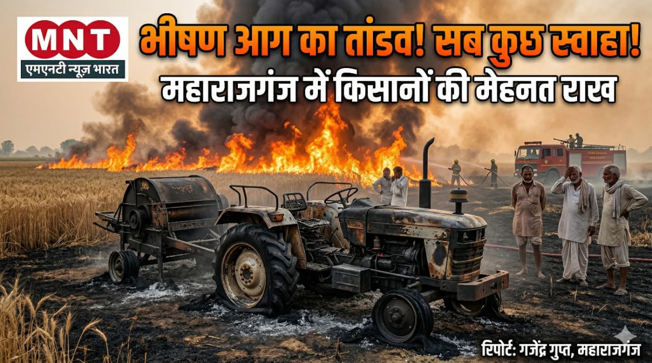 भीषण आग का तांडव! महराजगंज में किसानों की साल भर की मेहनत राख, भूसा मशीन के साथ ट्रैक्टर भी स्वाहा