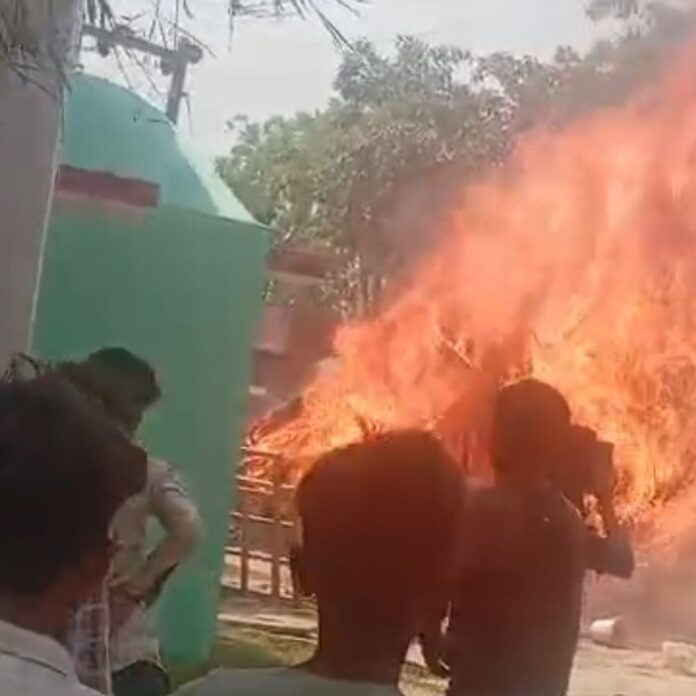 बहराइच जिले के रानीपुर थाना क्षेत्र स्थित ग्राम पंचायत बुलहा में एक घर में भीषण आग लग गई। अजीबुल्लाह खान के छप्पर वाले घर में लगी आग से पूरा घर और उसमें रखा सारा सामान जलकर राख हो गया। आग इतनी तेजी से फैली कि कुछ ही मिनटों में उसने विकराल रूप ले लिया। घर में रखा अनाज, कपड़े और गृहस्थी का सारा सामान जलकर नष्ट हो गया। आग की ऊंची लपटों और आसमान में फैले काले धुएं से पूरे गांव में दहशत फैल गई। प्रत्यक्षदर्शियों के अनुसार, घर के पास से गुजर रही 11000 वोल्ट की हाईटेंशन लाइन से निकली चिंगारी आग लगने का मुख्य कारण बनी। बताया गया कि लाइन में लगे जम्पर से स्पार्क हुआ और पास रखे सूखे छप्पर ने तुरंत आग पकड़ ली। घटना के बाद गांव में अफरा-तफरी मच गई। ग्रामीण अपनी जान जोखिम में डालकर आग बुझाने में जुट गए। तेज हवाओं के कारण आग और फैल गई, लेकिन ग्रामीणों ने लगातार प्रयास जारी रखे। उपकेंद्र रंजीतपुर के अधिकारी पंकज कुमार प्रजापति ने मौके पर पहुंचकर जांच की। उन्होंने ग्रामीणों को 11000 वोल्ट की हाईटेंशन लाइन के नीचे किसी भी प्रकार का छप्पर या ज्वलनशील सामग्री न रखने और सतर्क रहने की सलाह दी।