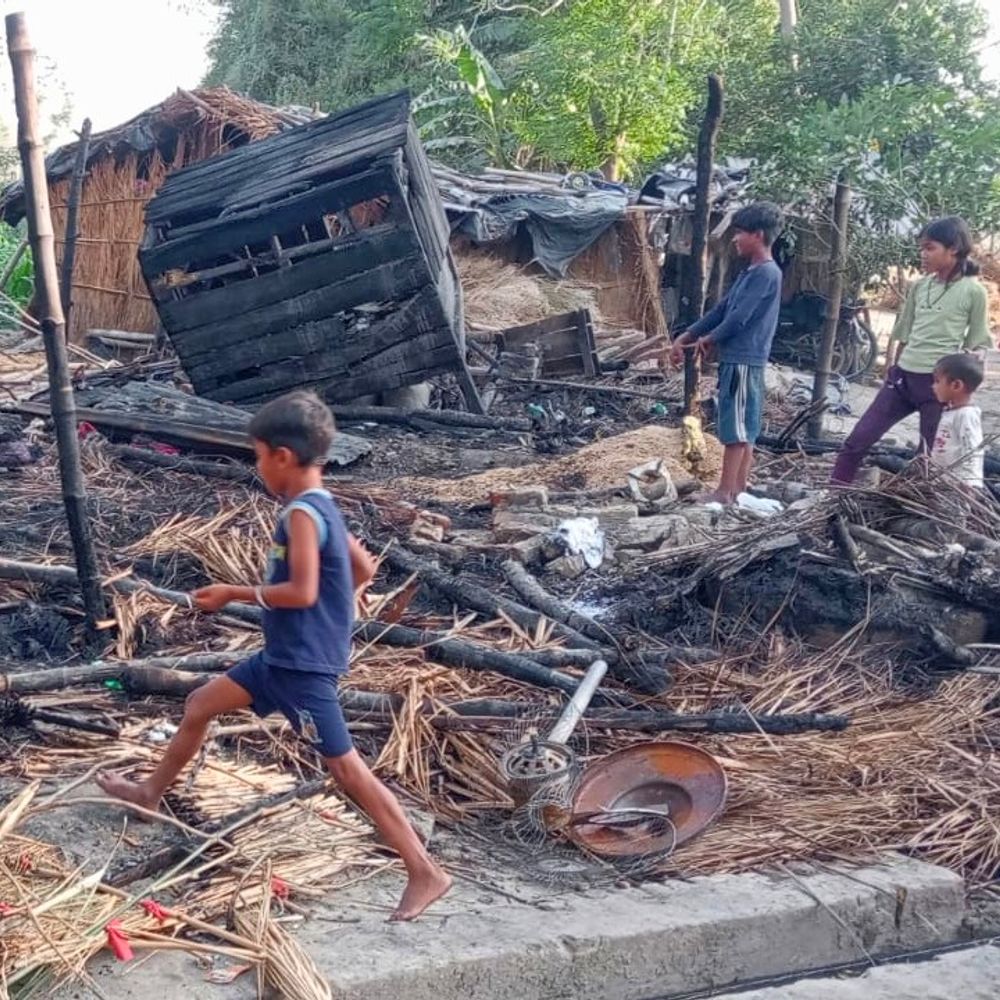 खरहरा में चार परिवारों की झोपड़ियां राख:अज्ञात कारणों से लगी आग, लाखों का सामान जला; बच्चों ने भागकर जान बचाईं