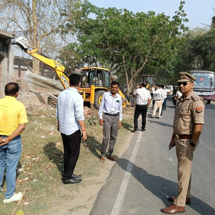 बस्ती-कांटे मार्ग पर उच्च न्यायालय के आदेश के बाद लोक निर्माण विभाग (PWD) की जमीन पर बने छह अवैध कमरों को ध्वस्त कर दिया गया। यह कार्रवाई राजस्व और लोक निर्माण विभाग के अधिकारियों की मौजूदगी में पुलिस बल की सहायता से की गई। साऊघाट विकास खंड के कुसम्हा चौराहे पर, जिला मुख्यालय से लगभग 18 किलोमीटर दूर, PWD की जमीन पर बने इन पक्के निर्माणों को शुक्रवार को बुलडोजर चलाकर हटाया गया। ध्वस्तीकरण के दौरान एक जेसीबी मशीन खराब हो गई, जिसके बाद प्रशासन ने दूसरी मशीन मंगवाकर कार्य पूरा कराया। यह मामला लालचंद मोदनवाल द्वारा उच्च न्यायालय में दायर एक याचिका से जुड़ा है। मोदनवाल ने आरोप लगाया था कि हरीश पटेल और अन्य लोगों ने उनकी संपत्ति के सामने PWD की जमीन पर अवैध निर्माण कर लिया है। उन्होंने बताया कि यह अवैध निर्माण उनके घर के नंबर के पीछे और उनके मकान के सामने किया गया था। उच्च न्यायालय ने मामले की सुनवाई करते हुए 30 मार्च, 2026 को जमीन को एक सप्ताह के भीतर खाली करने का आदेश दिया था। इसके अनुपालन में, लोक निर्माण विभाग ने 21 अप्रैल, 2026 तक संबंधित पक्षों को स्वयं जमीन खाली करने का नोटिस जारी किया। नोटिस में यह भी चेतावनी दी गई थी कि यदि तय समय में जमीन खाली नहीं की गई, तो प्रशासन स्वयं कार्रवाई करेगा और ध्वस्तीकरण का खर्च भी संबंधित व्यक्तियों से वसूला जाएगा। ध्वस्तीकरण की कार्रवाई के बाद, हरीश पटेल, प्रेम शर्मा, माधव और मनीष शर्मा ने अपना पक्ष रखा। हरीश पटेल ने दावा किया कि गाटा संख्या 45 (रकबा 19 एयर) और गाटा संख्या 46 (रकबा 16 एयर) शर्मा परिवार के नाम पर दर्ज हैं। उन्होंने कहा कि राजस्व खतौनी में यह जमीन ‘चेक बाहर’ की श्रेणी में आती है और प्रशासन द्वारा उनके खिलाफ अनुचित कार्रवाई की गई है।