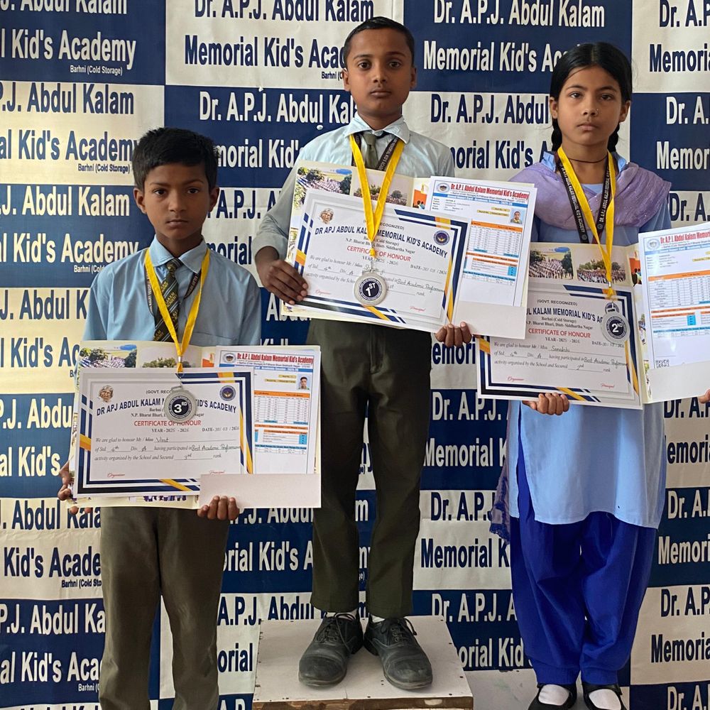 डॉ. एपीजे अब्दुल कलाम मेमोरियल किड्स एकेडमी, बढ़नी (कोल्ड स्टोरेज) नगर पंचायत भारत भारी में सोमवार को वार्षिक अंक पत्र वितरण समारोह आयोजित किया गया। इस अवसर पर नर्सरी से कक्षा सप्तम तक के मेधावी छात्रों को उनके उत्कृष्ट शैक्षिक प्रदर्शन के लिए सम्मानित किया गया। कार्यक्रम में प्रथम, द्वितीय और तृतीय स्थान प्राप्त करने वाले छात्रों को अंक पत्र, प्रशस्ति पत्र और मेडल प्रदान कर उनका उत्साहवर्धन किया गया। अंक पत्र वितरण समारोह का संचालन शहजाद आलम ने प्रभावी ढंग से किया, जिससे पूरे आयोजन में ऊर्जा बनी रही। अंक पत्र वितरण समारोह में विभिन्न कक्षाओं के टॉपर्स की सूची भी घोषित की गई। नर्सरी कक्षा में कुमकुम 95 प्रतिशत, एंजल 93 प्रतिशत और अभिनव प्रताप 93.38 प्रतिशत ने क्रमशः प्रथम, द्वितीय और तृतीय स्थान प्राप्त किया। एलकेजी में अवीशी पांडेय, आर्यन शर्मा और प्रीति ने उत्कृष्ट प्रदर्शन किया। यूकेजी (A) में मोहम्मद उस्मान, प्रिंस और सोनाक्षी, जबकि यूकेजी (B) में कल्पना, अभय और अमित कुमार ने प्रथम, द्वितीय एवं तृतीय स्थान प्राप्त किया। इसी क्रम में कक्षा प्रथम (A) में दिव्यांशी, अनुप्रिया और आरव गौतम तथा प्रथम (B) में रवि, रजनी यादव और सुप्रिया गौतम ने बेहतर स्थान हासिल किया। कक्षा द्वितीय (A) में अहद अली, मोनू और करन चौरसिया, तथा द्वितीय (B) में प्रियंशु, मेहर सोनी और विनय कुमार अव्वल रहे। तृतीय कक्षा में जानक प्रिया, अंतिमा और अरुण, चतुर्थ में श्याम जी, सोनाक्षी और विराट, पंचम में शौर्य पांडेय, मोहम्मद साकिब और समीर ने उत्कृष्ट प्रदर्शन किया। वहीं कक्षा छह में अभिषेक गौतम, मिस्बाह और मोहम्मद उमर तथा सप्तम में पूजा कुमारी, सेजल भारती और अंजनी ने क्रमशः प्रथम, द्वितीय और तृतीय स्थान प्राप्त कर विद्यालय का नाम रोशन किया। इस अवसर पर अरमान मलिक, गौतम कुमार, माया जायसवाल, रीमा चौरसिया सहित समस्त विद्यालय स्टाफ उपस्थित रहा। बड़ी संख्या में अभिभावक एवं छात्र-छात्राएं भी कार्यक्रम में शामिल हुए और बच्चों की सफलता पर हर्ष व्यक्त किया। यहां देखिए तस्वीरें…