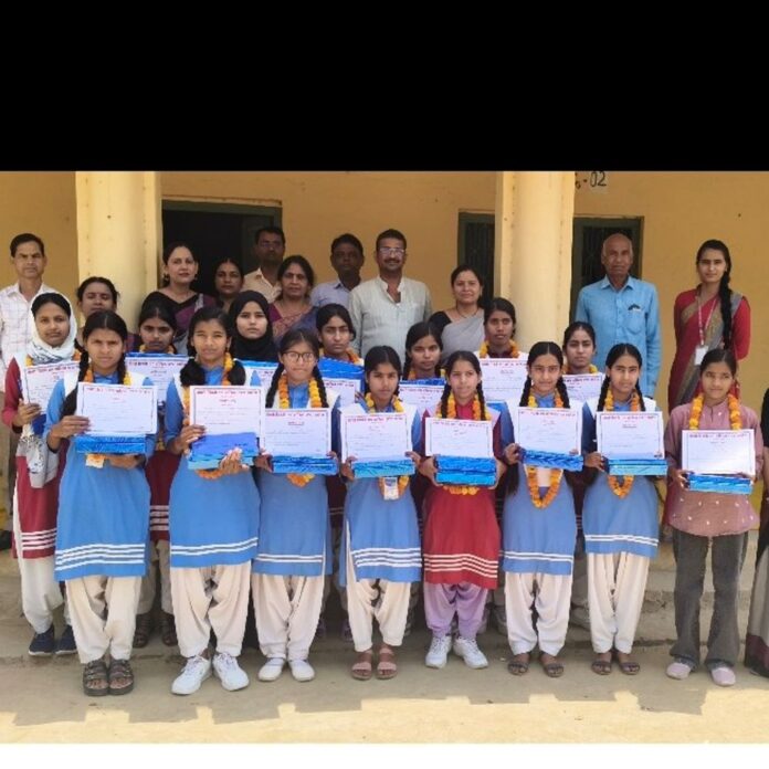 बस्ती के बहादुरपुर विकास खंड स्थित चौधरी त्रिवेणी राम बालिका इंटर कॉलेज कलवारी में सोमवार को सम्मान समारोह आयोजित किया गया। यह समारोह हाईस्कूल और इंटरमीडिएट की उन छात्राओं के लिए था, जिन्होंने बोर्ड परीक्षाओं में अच्छे अंक प्राप्त किए थे। इस अवसर पर छात्राओं के अभिभावक भी उपस्थित रहे। कार्यक्रम में प्रबंधक अमित चौधरी और प्रधानाचार्या प्रतिमा चौधरी ने हाईस्कूल में शशि, इंटरमीडिएट विज्ञान वर्ग में शालिनी और कला वर्ग में इकरा को प्रशस्ति पत्र देकर सम्मानित किया। इन छात्राओं ने अपनी-अपनी कक्षाओं में सर्वोच्च स्थान प्राप्त किया है। प्रबंधक अमित चौधरी ने कहा कि माध्यमिक शिक्षा परिषद द्वारा घोषित 2026 के परिणामों में विद्यालय की छात्राओं ने उत्कृष्ट प्रदर्शन कर न केवल विद्यालय का, बल्कि अपने परिवार का नाम भी रोशन किया है। उन्होंने विद्यालय परिवार की ओर से छात्राओं पर गर्व व्यक्त किया। प्रधानाचार्या प्रतिमा चौधरी ने बताया कि इस वर्ष विद्यालय की हाईस्कूल में 90% और इंटरमीडिएट में 86% छात्राएं सफल हुई हैं। उन्होंने बताया कि हाईस्कूल में शशि ने 89.66% अंक और इंटरमीडिएट में शालिनी यादव ने 86% अंक प्राप्त कर विद्यालय में टॉप किया है। कला वर्ग में इकरा ने 81.6% अंक प्राप्त कर विद्यालय का नाम रोशन किया। इसके अतिरिक्त, हाईस्कूल में दिलीप कुमार की दोनों बेटियां पलक और पायल, शिवांगी तथा कुमुद ने भी अच्छे अंक प्राप्त किए। विश्वनाथ अग्रहरि की बेटी ईशा अग्रहरि ने हाईस्कूल और साक्षी अग्रहरि ने इंटरमीडिएट में अच्छा प्रदर्शन किया। इंटरमीडिएट की प्रज्ञा चौधरी, मोनू, अदीबा नाज, शशि कन्नौजिया, आराधना यादव, सुष्मिता और अंशिका गौतम ने भी सराहनीय अंक हासिल किए। इस अवसर पर विनोद चौधरी, लल्लू राम मौर्य, जगवंत कुमार, कलावती, कमलावती, राजकुमार, बीना चौधरी, प्रेमनाथ चौधरी सहित विद्यालय के शिक्षक, अभिभावक और छात्राएं मौजूद रहीं।
