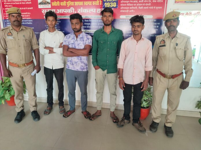 पुलिस अधीक्षक बस्ती डॉ0 यशवीर सिंह के आदेश से अपर पुलिस अधीक्षक बस्ती श्याम कांत के निर्देशन में क्षेत्राधिकारी रूधौली कुलदीप सिंह यादव के पर्यवेक्षण में व प्रभारी निरीक्षक रूधौली संजय कुमार दूबे के नेतृत्व में पुलिस द्वारा 04 नफर अभियुक्त को शांति व्यवस्था के गिरफ्तार आवश्यक कानूनी प्रक्रिया पूरी करते हुए भेजा गया न्यायालय