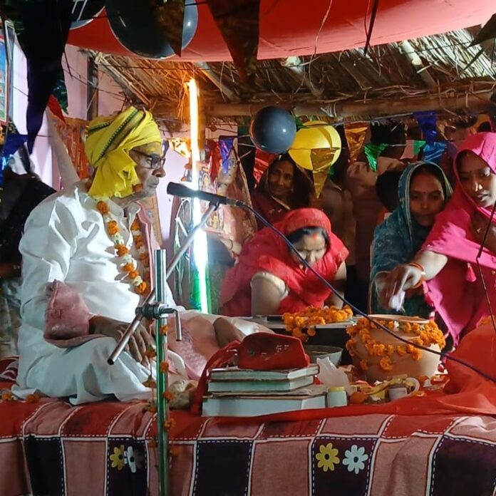 बद्रीपुरवा क्षेत्र में चल रही श्रीमद् भागवत कथा के छठवें दिन कृष्ण-रुक्मिणी विवाह का आयोजन किया गया। कथावाचक पं० राकेश मिश्र जी महाराज ने श्रद्धालुओं को कृष्ण-रुक्मिणी विवाह की कथा सुनाई। इस अवसर पर भगवान कृष्ण की बारात निकाली गई। श्रद्धालु झूमते-गाते बारात लेकर निकले, जबकि सखियां रुक्मिणी को मंच पर लेकर आईं। कथा पंडाल में मौजूद श्रद्धालुओं ने इस विवाह के साक्षी बनकर जमकर पुष्प वर्षा की। विवाह संपन्न होने के बाद श्रद्धालुओं ने कन्यादान कर उपहार भी भेंट किए। कथा व्यास पं० राकेश मिश्र जी महाराज ने बताया कि द्वारिका में रहते हुए भगवान श्रीकृष्ण और बलराम का नाम चारों ओर फैल गया था। विदर्भ देश के राजा भीष्मक की पुत्री रुक्मिणी ने श्रीकृष्ण के गुणों और सुंदरता पर मुग्ध होकर उन्हें मन ही मन अपना पति मान लिया था। अपने भाई के विरोध के बावजूद रुक्मिणी ने श्रीकृष्ण से विवाह किया। इस आयोजन में मुख्य यजमान सत्यनारायण, लक्ष्मण चौहान, गोविंद, भरत, रामकेवल सहित बड़ी संख्या में श्रद्धालु उपस्थित रहे।