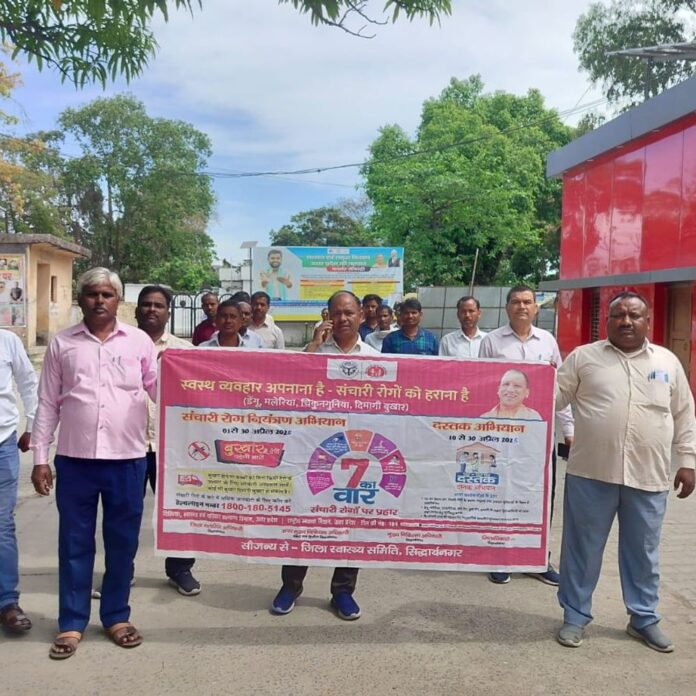 सिद्धार्थनगर के इटवा ब्लॉक में विशेष संचारी रोग नियंत्रण अभियान के तहत एक जागरूकता रैली निकाली गई। इस रैली में स्वास्थ्य और पंचायती राज विभाग के कर्मचारियों ने भाग लिया, जिसका उद्देश्य संचारी रोगों के प्रति लोगों को जागरूक करना था। बुधवार को ब्लॉक मुख्यालय से सामुदायिक स्वास्थ्य केंद्र (सीएचसी) अधीक्षक डॉ. संदीप द्विवेदी ने इस जागरूकता रैली को हरी झंडी दिखाकर रवाना किया। रैली डुमरियागंज मार्ग से होते हुए सीएचसी पर समाप्त हुई। कर्मचारियों ने विभिन्न नारों के माध्यम से लोगों को संचारी रोगों से बचाव के लिए जागरूक किया। रैली के दौरान “सिद्धार्थनगर ने ठाना है, संचारी रोग भगाना है”, “कचरा कचरादानी में, सोओ मच्छरदानी में”, और “पानी को ढक कर रखो, बीमारियों से बचकर रहो” जैसे नारे लगाए गए। इन नारों के जरिए स्वच्छता और व्यक्तिगत बचाव के महत्व पर जोर दिया गया। सीएचसी अधीक्षक डॉ. संदीप द्विवेदी ने ग्रामीणों से विशेष संचारी रोग नियंत्रण एवं दस्तक अभियान को सफल बनाने की अपील की। उन्होंने गांवों को साफ-सुथरा रखने और ग्रामीणों को इसके लिए जागरूक करने पर जोर दिया। डॉ. द्विवेदी ने बताया कि संचारी रोगों के प्रभावी नियंत्रण और त्वरित उपचार के लिए यह व्यापक अभियान चलाया जा रहा है। यह विशेष संचारी रोग नियंत्रण अभियान 01 अप्रैल 2026 से 30 अप्रैल 2026 तक संचालित किया जाएगा, जबकि दस्तक अभियान 10 अप्रैल से 30 अप्रैल 2026 तक चलेगा। इन अभियानों को विस्तृत कार्ययोजना बनाकर संचालित किया जाना है, जिसमें सभी कर्मचारियों और जनसमुदाय की भागीदारी महत्वपूर्ण है। इस अवसर पर बीसीपीएम शिव शंकर वरुण, एडीओ आई एबी जगनारायण, सचिव जावेद खान, जय प्रकाश, अशोक कुमार, अलगू प्रसाद, सुदामा प्रसाद, बृजलाल, विश्राम, राजेश कुमार, पवन कुमार, राकेश मिश्रा, गोपाल सहित कई अन्य कर्मचारी मौजूद रहे।