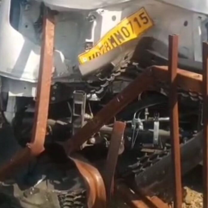 राष्ट्रीय राजमार्ग 27 पर मिनी डीसीएम डिवाइडर से टकराई:छावनी थाना क्षेत्र में जमौलिया माफ़ी गांव के पास रेलिंग टूटी, ड्राइवर सुरक्षित