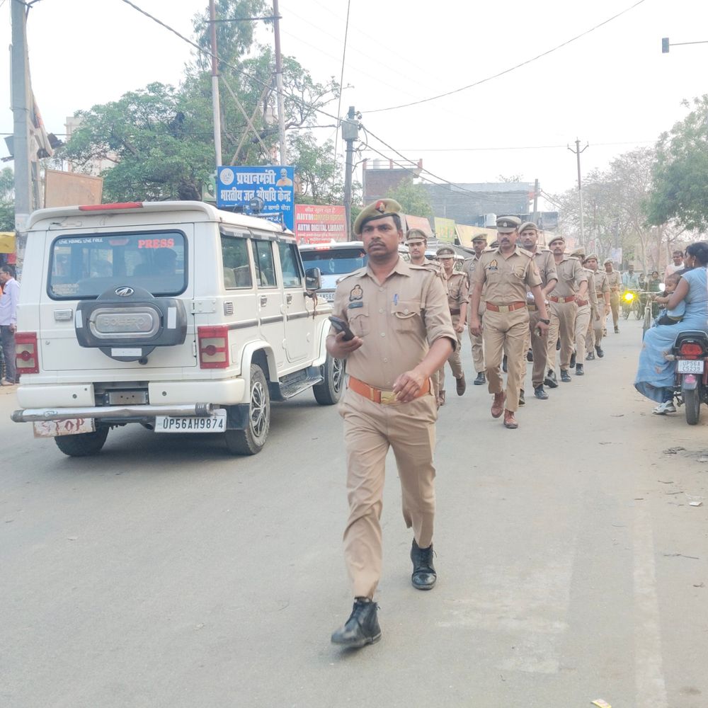 घुघली में नवप्रशिक्षित आरक्षियों ने की पैदल गश्त:थानाप्रभारी कुंवर गौरव सिंह के नेतृत्व में कानून-व्यवस्था का जायजा