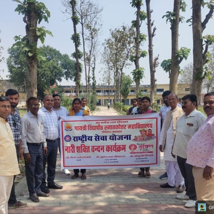 रिसिया स्थित गायत्री विद्यापीठ पीजी कॉलेज में राष्ट्रीय सेवा योजना (एनएसएस) के तत्वावधान में नारी शक्ति वंदन कार्यक्रम का आयोजन किया गया। इस दौरान छात्र-छात्राओं ने पदयात्रा निकाली और एक विशाल मानव श्रृंखला बनाई। यह कार्यक्रम नारी शक्ति वंदन अधिनियम के अंतर्गत आयोजित किया गया था। इसकी शुरुआत बैनर हस्ताक्षर अभियान से हुई, जिसमें छात्र-छात्राओं ने उत्साहपूर्वक भाग लिया। महाविद्यालय के प्राचार्य डॉ. दिव्य दर्श तिवारी ने कार्यक्रम को संबोधित करते हुए कहा कि नारी अपने आप में एक शक्ति होती है, बस उसे जागरूक करने की आवश्यकता है। उन्होंने छात्राओं से अपनी शक्ति का एहसास करने और समाज में फैली कुरीतियों को दूर करने का आह्वान किया। प्राचार्य के संबोधन के बाद शिक्षकों और छात्र-छात्राओं ने मिलकर पदयात्रा निकाली। इसके उपरांत छात्राओं ने एक विशाल मानव श्रृंखला का निर्माण किया। इस अवसर पर डॉ. सुभाष चंद्र, डॉ. डी.आर. यादव, डॉ. मिथलेश चौधरी, डॉ. पवन कुमार वर्मा, राष्ट्रीय सेवा योजना की प्रथम इकाई के कार्यक्रमाधिकारी डॉ. मुकेश चंद्र श्रीवास्तव, द्वितीय इकाई के कार्यक्रमाधिकारी डॉ. आशुतोष त्रिपाठी, डॉ. दुर्गेश श्रीवास्तव, डेविड कुमार पाण्डेय, उमेश कुमार वर्मा, धर्मेंद्र श्रीवास्तव, नंदन श्रीवास्तव और रीकेश्वर प्रसाद सहित कई गणमान्य व्यक्ति उपस्थित रहे।