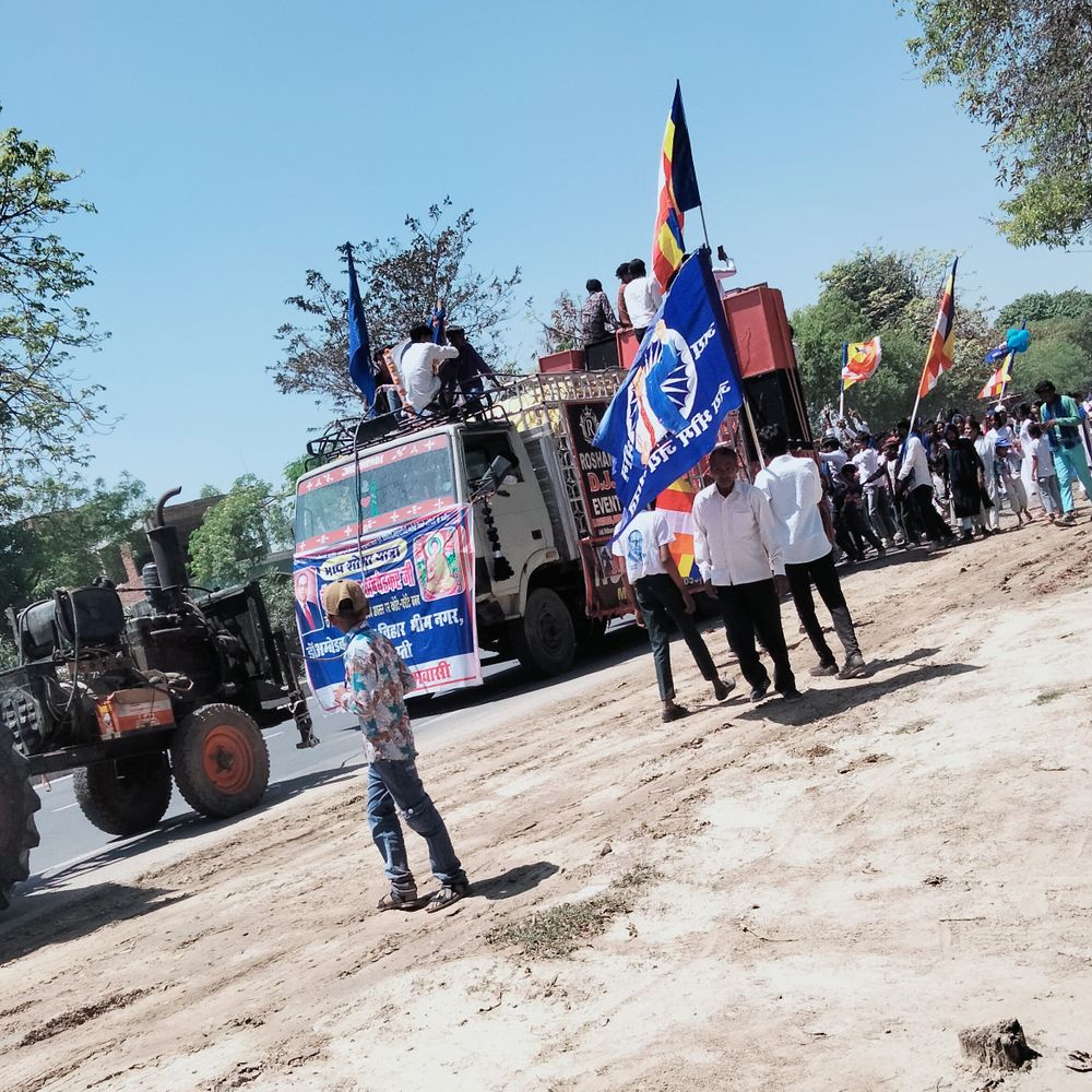 शंकरपुर में अंबेडकर जयंती पर शोभायात्रा:नेशनल हाईवे से हर्रैया बुद्ध विहार तक गई, पुलिस बल तैनात