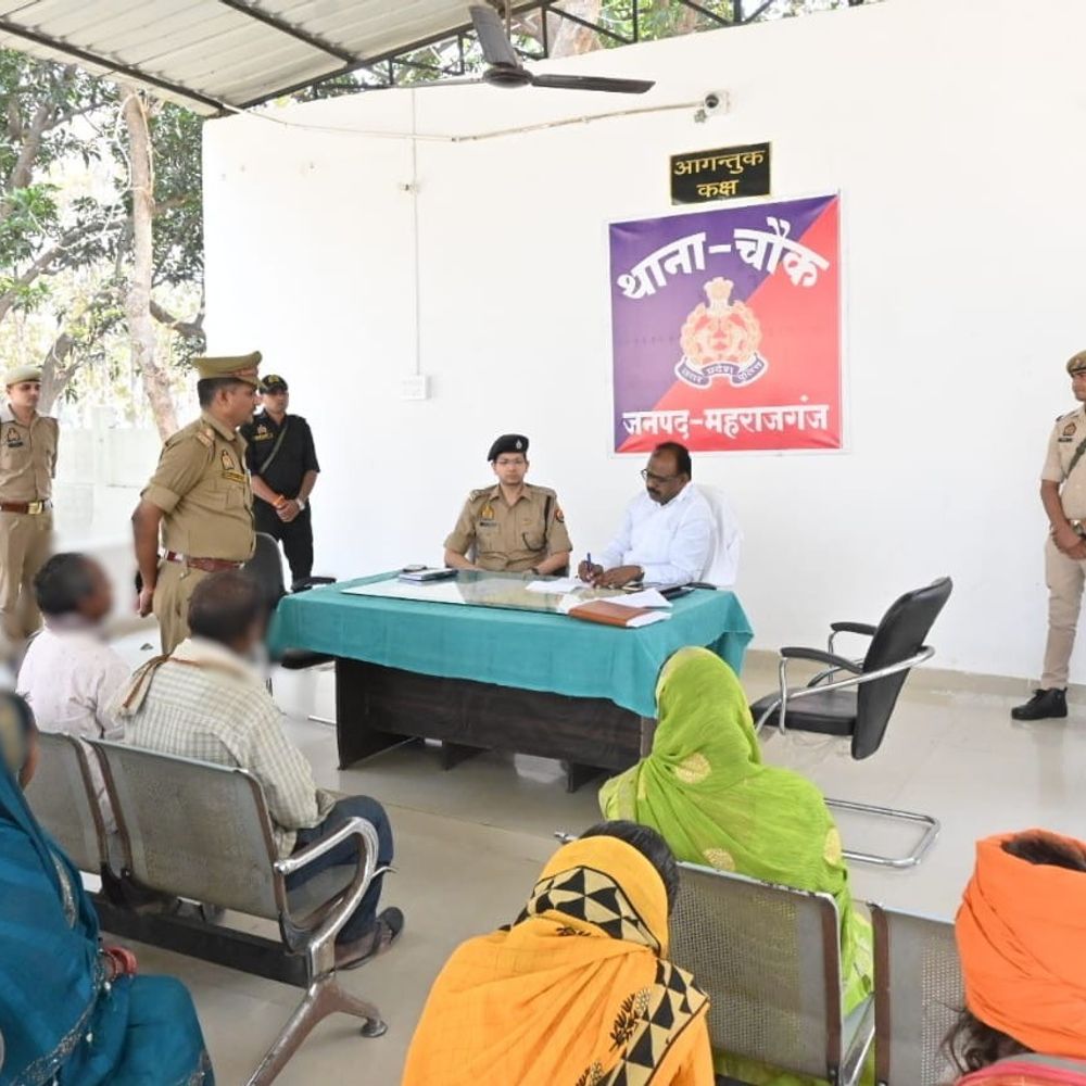 महराजगंज। 11 अप्रैल, 2026 को जनपद के सभी थानों में थाना समाधान दिवस का आयोजन किया गया। इस अवसर पर जिलाधिकारी श्री संतोष कुमार शर्मा और पुलिस अधीक्षक श्री शक्ति मोहन अवस्थी ने थाना चौक में पहुंचकर जनमानस की समस्याओं को सुना। अधिकारियों ने राजस्व और पुलिस टीमों को आपस में समन्वय स्थापित कर सभी प्रकरणों का यथाशीघ्र निस्तारण करने के निर्देश दिए। इसका उद्देश्य यह सुनिश्चित करना है कि आमजन को अपनी समस्याओं के समाधान के लिए अनावश्यक रूप से भटकना न पड़े। पुलिस अधीक्षक महराजगंज ने विशेष रूप से निर्देशित किया कि जमीन संबंधी सभी मामलों का निस्तारण पुलिस और राजस्व की संयुक्त टीमों द्वारा किया जाए। उन्होंने कहा कि इससे मामलों का त्वरित और न्यायपूर्ण समाधान हो सकेगा। पुलिस अधीक्षक ने यह भी निर्देश दिए कि थाना स्तर, आईजीआरएस या अन्य सभी माध्यमों से प्राप्त जमीन संबंधी प्रार्थना पत्रों को थाना समाधान दिवस रजिस्टर में अनिवार्य रूप से अंकित किया जाए। साथ ही, समाधान दिवस पर दोनों पक्षों को बुलाकर पुलिस और राजस्व की संयुक्त टीम द्वारा उनका निस्तारण किया जाए।