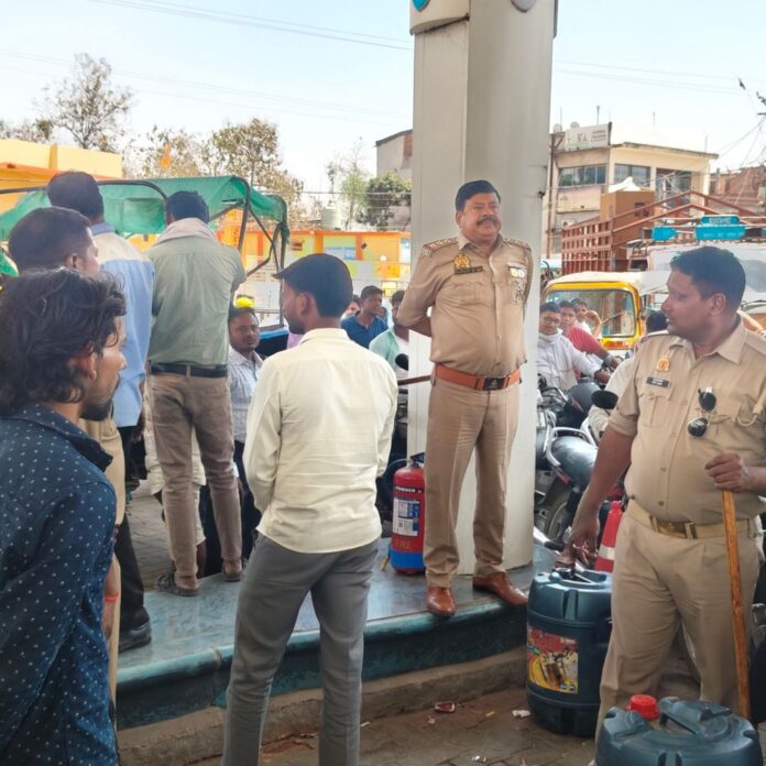 पेट्रोल पंप पर मंगलवार को भारी भीड़ के चलते हालात बेकाबू हो गए। सुबह से लगी लंबी कतारों के कारण आसपास के स्कूलों के छात्रों को आवागमन में भारी दिक्कतों का सामना करना पड़ा। भीड़ के बीच फंसे सरस्वती स्कूल के एक छात्र के चोटिल होने की भी सूचना है। श्री शंकर इंटर कॉलेज और सरस्वती स्कूल के छात्रों के आने-जाने में बाधा उत्पन्न होने पर शिक्षक बैकुंठ नाथ अवस्थी ने एसडीएम मोनालिसा जौहरी और यातायात निरीक्षक राम प्रकाश यादव से शिकायत की। इसके बाद कोतवाली से अतिरिक्त पुलिस बल और यातायात कर्मियों को मौके पर तैनात किया गया। वरिष्ठ उपनिरीक्षक शशि प्रताप सिंह, कस्बा इंचार्ज द्वितीय रिजवान उल्ला खान और उपनिरीक्षक मनीष यादव ने भीड़ को नियंत्रित करने का प्रयास किया, लेकिन अत्यधिक भीड़ के कारण स्थिति बार-बार बिगड़ती रही। इसके बाद प्रभारी निरीक्षक राजनाथ सिंह ने यातायात उपनिरीक्षक रवि यादव के साथ मोर्चा संभाला और कड़ी धूप में व्यवस्था को सामान्य करने में जुटे रहे। इसी दौरान पेट्रोल पंप पर डीजल समाप्त हो जाने से कुछ हद तक भीड़ में कमी आई, लेकिन स्थिति पूरी तरह नियंत्रण में नहीं आ सकी। भारी भीड़ के कारण यातायात व्यवस्था भी बार-बार चरमराती रही। उपभोक्ताओं में इस बात को लेकर खासा आक्रोश देखने को मिला कि पेट्रोल पंप पर ₹200 से अधिक का पेट्रोल नहीं दिया जा रहा है। घंटों इंतजार के बाद भी सीमित मात्रा में ईंधन मिलने से लोग नाराज नजर आए। वहीं, इस पूरे घटनाक्रम ने जिला पूर्ति अधिकारी के दावों की भी पोल खोल दी है, क्योंकि जमीनी स्तर पर ईंधन की किल्लत और अव्यवस्था साफ दिखाई दे रही है।