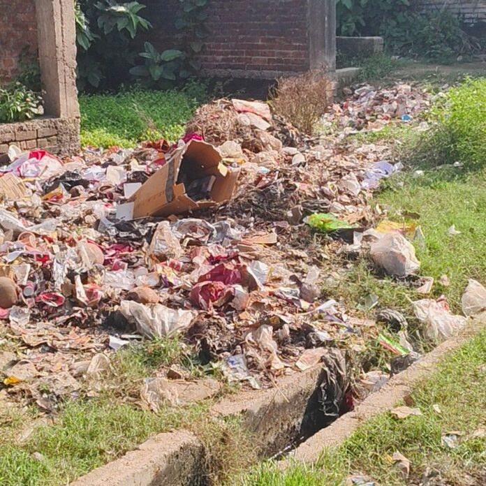 गिलौला थाने के सामने गंदगी का अंबार:राहगीर व स्थानीय लोग परेशान, संक्रामक बीमारियों का खतरा